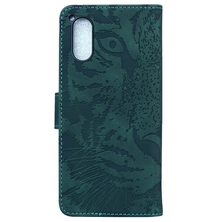 Funda Flip de Cuero para Sony Xperia 5 V con Patrón Tiger Embossing (Verde)