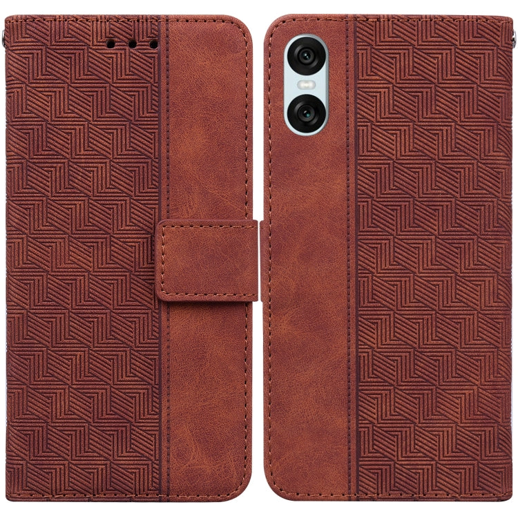 Funda de Cuero para Sony Xperia 5 Vi con Relieve Geométrico (Marrón)