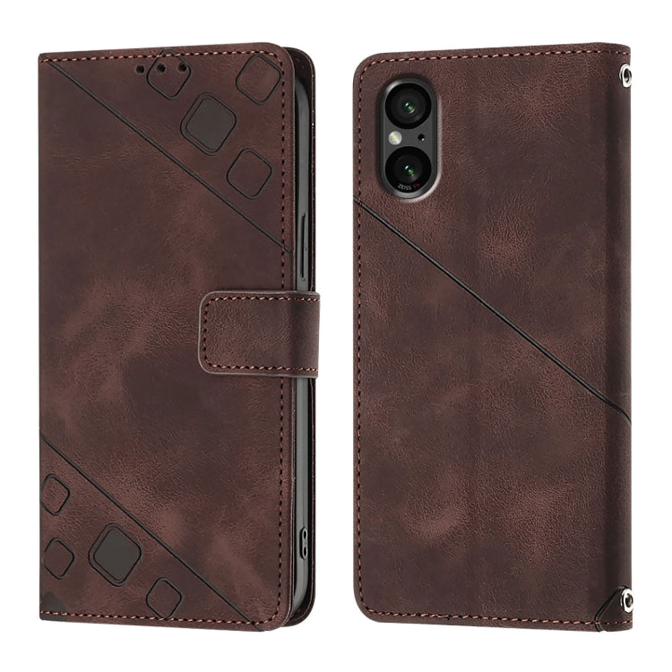 Funda de Cuero para Sony Xperia 5 Vi con Relieve y Sensación de Piel (Marrón)