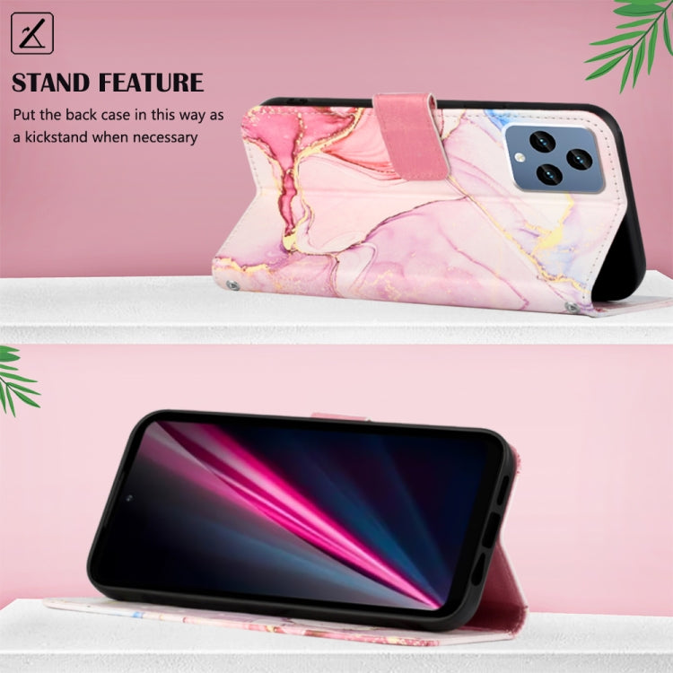 Estuche de Cuero para T-Mobile Revvl 6 5G Pt003 con Tapa de Patrón Mármol (Oro Rosa)