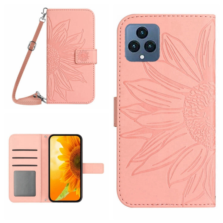 Funda Flip de Cuero para T-Mobile Revvl 6 5G con Cordón y Diseño Sun Flower (Rosa)