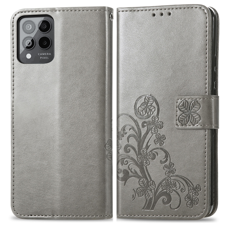 Estuche para Teléfono T-Mobile Revvl 6 Pro 5G Cuero con Hebilla y Cierre de Cuatro Hojas (Gris)