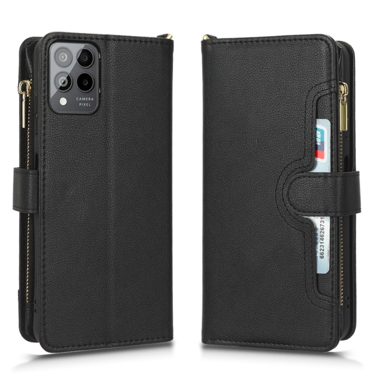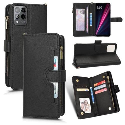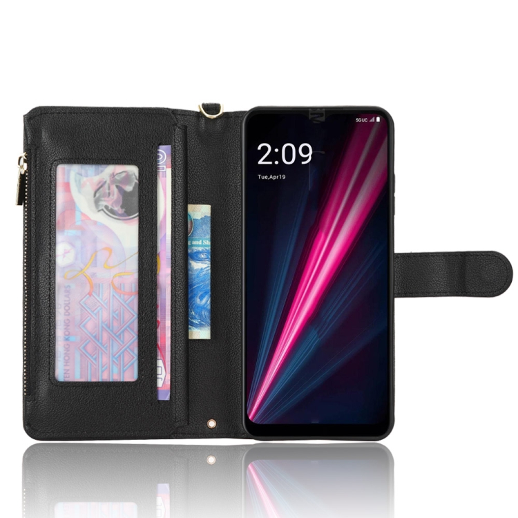 Funda de Cuero con Cremallera para T-Mobile Revvl 6 Pro 5G Litchi Textura (Negro)