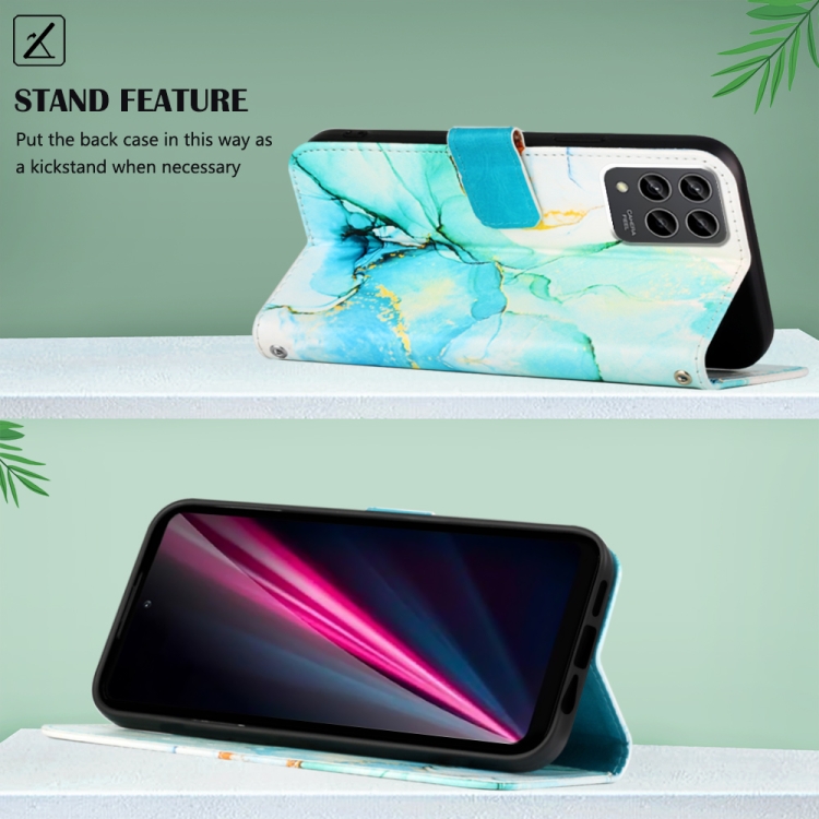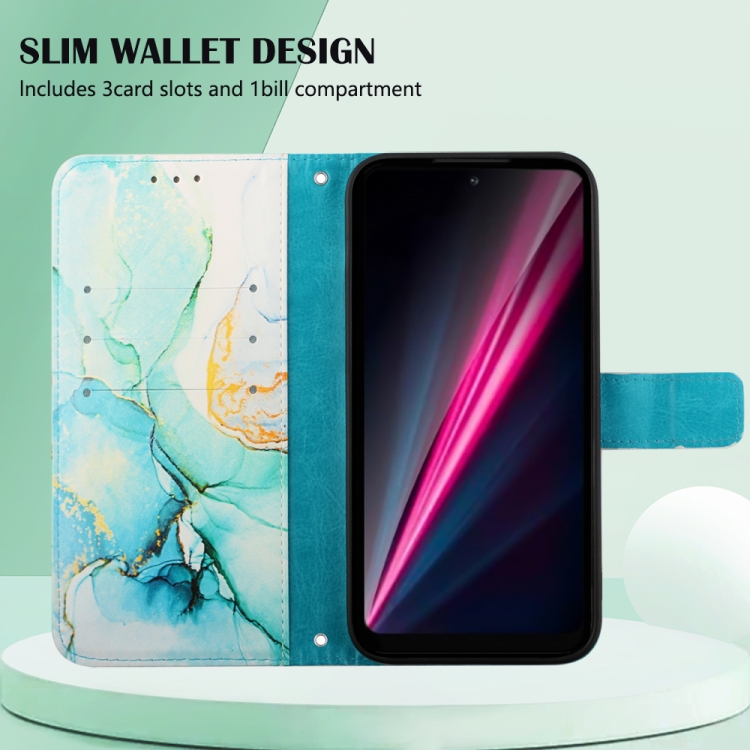 Estuche para Teléfono T-Mobile Revvl 6 Pro 5G Pt003 Cuero con Tapa y Patrón Mármol (Verde)
