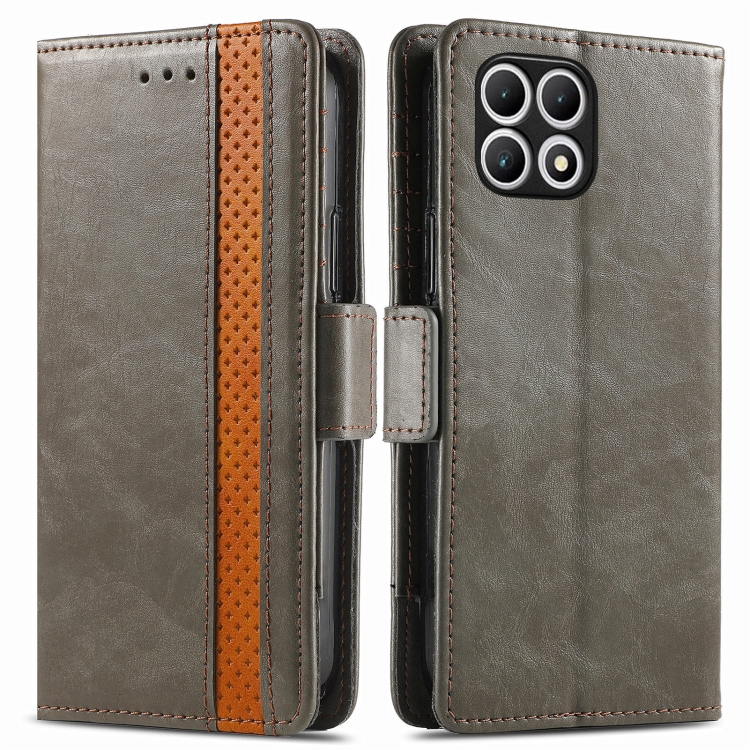 Funda de Cuero Caseneo para T-Mobile Revvl 7 5G con Hebilla Magnética Dual (Gris)