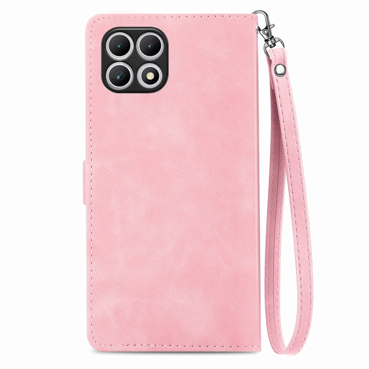 Funda de Cuero para T-Mobile Revvl 7 5G con Cremallera y Flor en Relieve (Rosa)