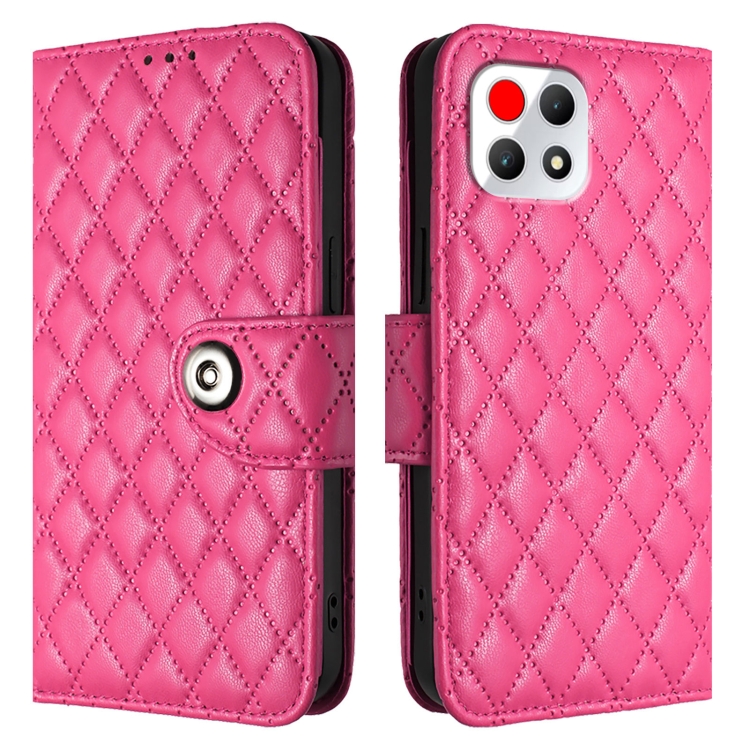 Funda para T-Mobile Revvl 7 5G con Tapa de Cuero Textura Rómbica y Cordón (Rojo Rosa)