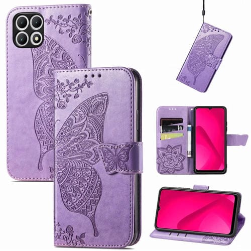 Funda para teléfono T-Mobile Revvl 7 5G cuero con relieve flor y mariposa (Púrpura Claro)