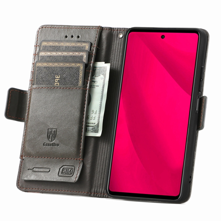 Funda de Cuero Caseneo para T-Mobile Revvl 7 Pro 5G con Hebilla Magnética Dual (Gris)