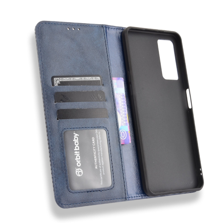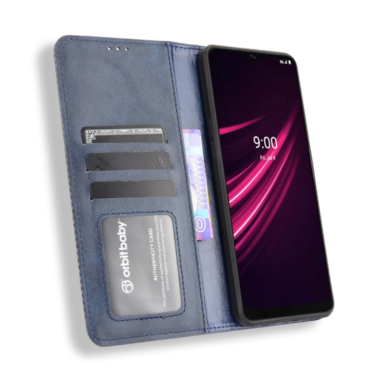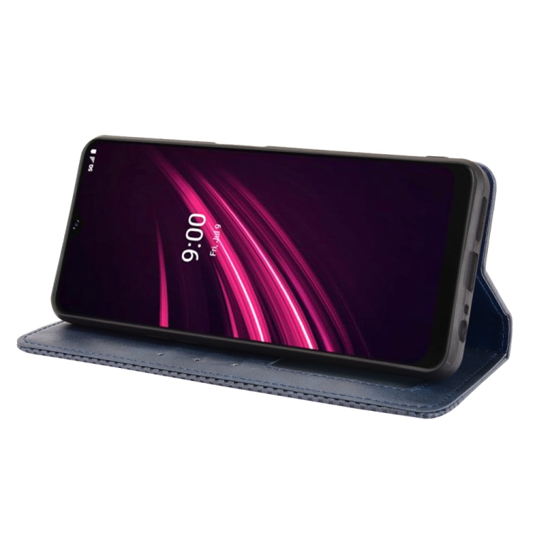Funda para T-Mobile Revvl V + 5G con Hebilla Magnética, Textura Crazy Horse, Soporte y Ranuras para Tarjetas (Azul)