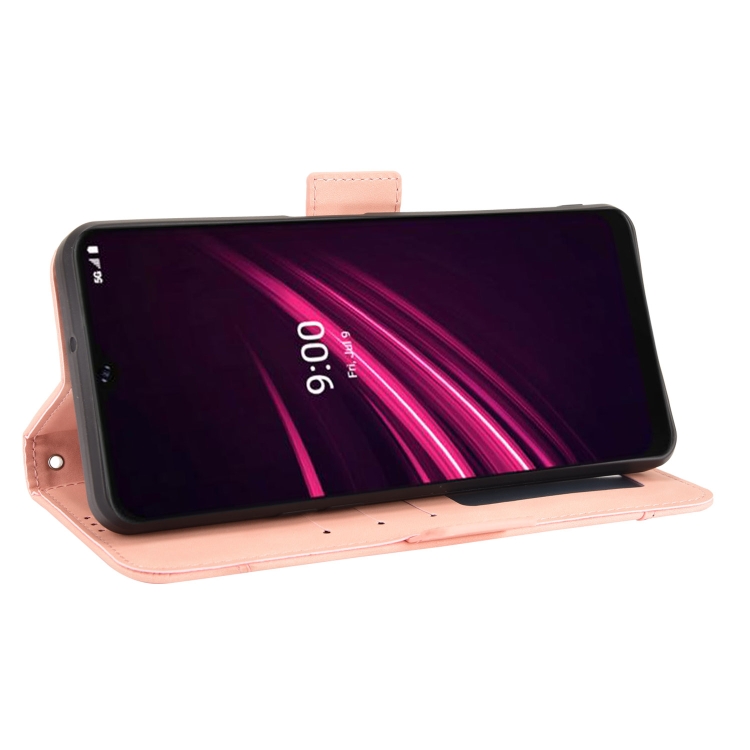 Funda Cuero Horizontal para T-Mobile Revvl V + 5G con Soporte y Ranuras (Rosa)
