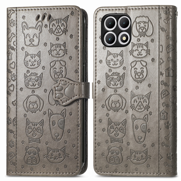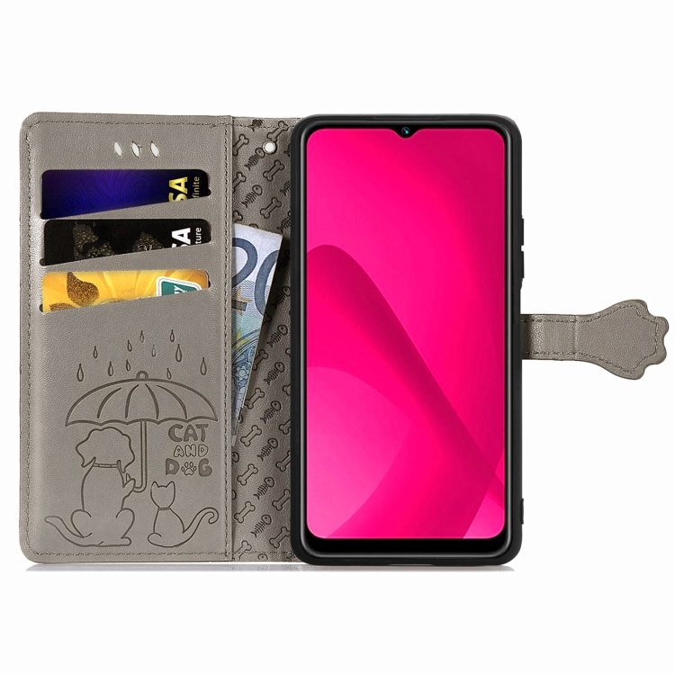 Funda de Cuero para T-Mobile T Phone 2 5G con Relieve Perros y Gatos (Gris)