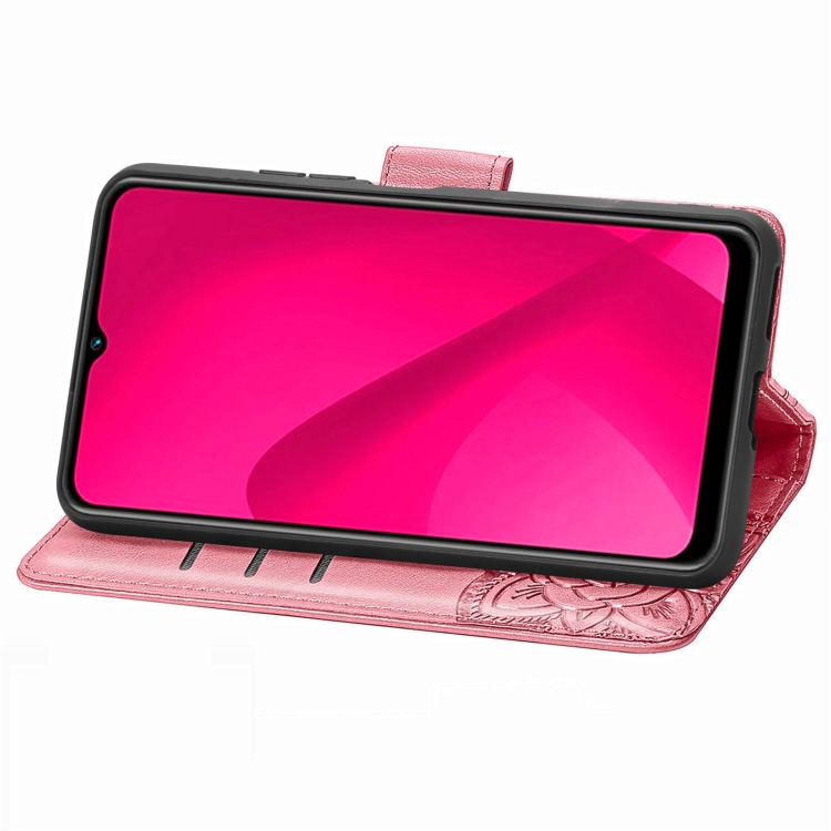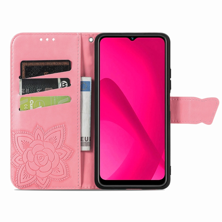 Funda para T-Mobile T Phone 2 5G Cuero con Relieve Flor de Amor y Mariposa (Rosa)