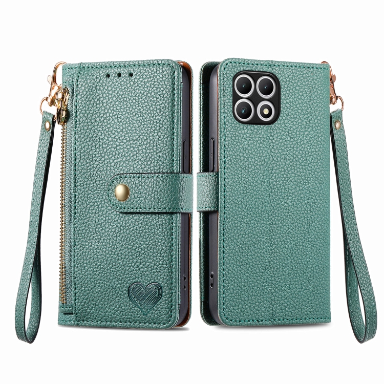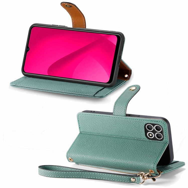 Funda de Cuero para T-Mobile T Phone 2 Pro 5G Love Zipper Lanyard (Verde)