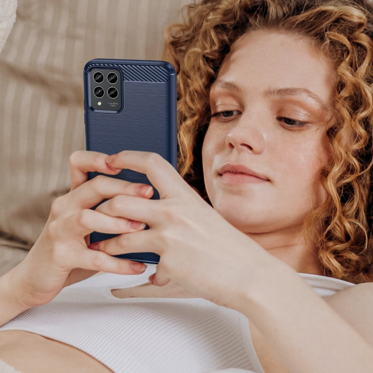 Funda para T-Mobile T Phone Pro 5G TPU con Textura Cepillada de Fibra de Carbono (Azul)