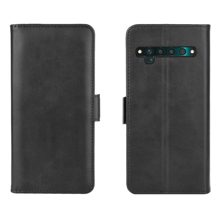 Estuche de Cuero para TCL 10 Pro Abatible Horizontal con Hebilla Magnética y Soporte (Negro)