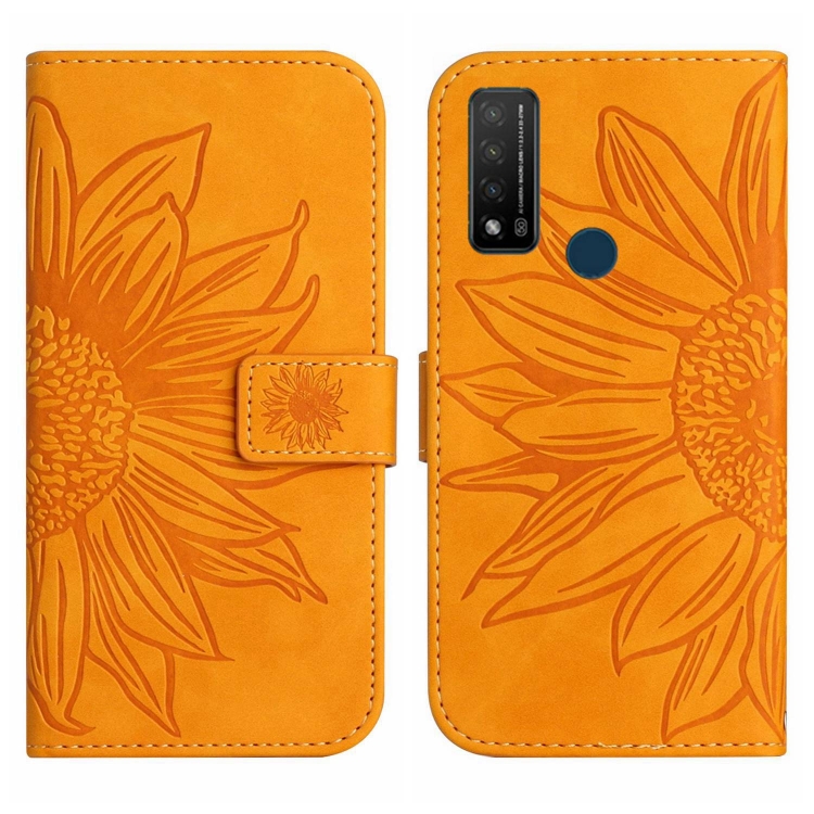 Funda de Cuero Flip para TCL 20 R/20 Ax 5G Bremen 5G con Cordón (Amarillo) Skin Feel Sun Flower