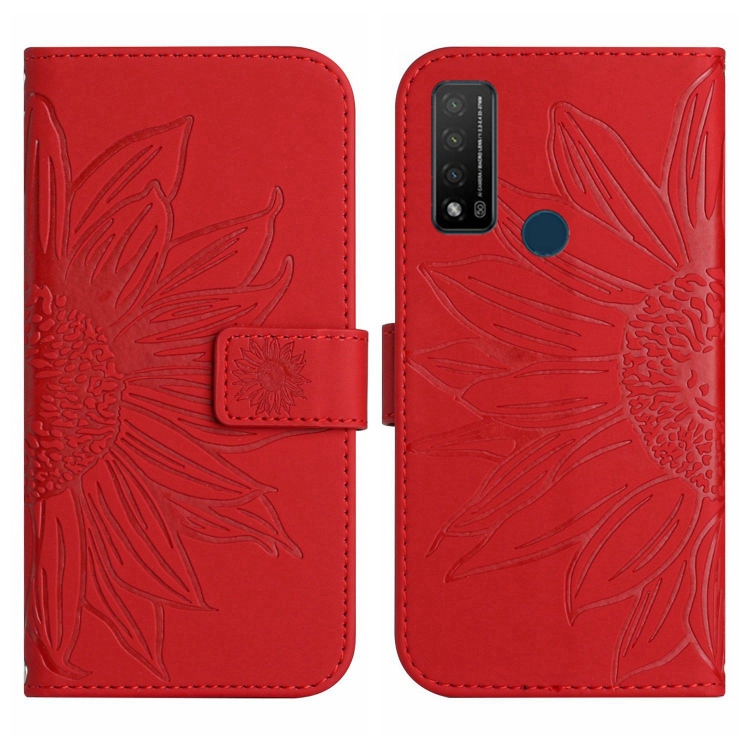 Funda de Cuero Flip para TCL 20 R/20 Ax 5G Bremen 5G con Cordón y Diseño Sun Flower (Rojo)