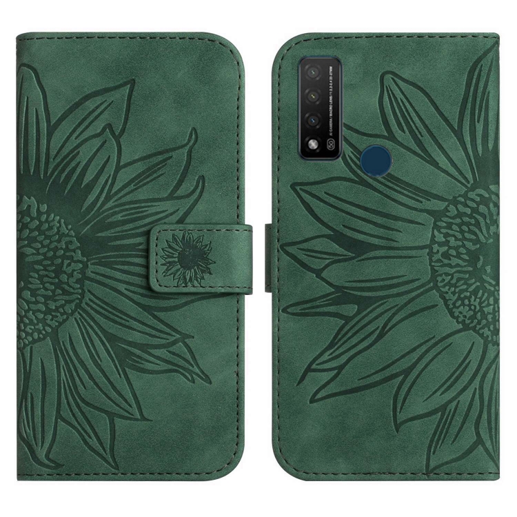 Funda de Cuero Flip para TCL 20 R/20 Ax 5G Bremen 5G con Cordón (Verde) Skin Feel Sun Flower Pattern