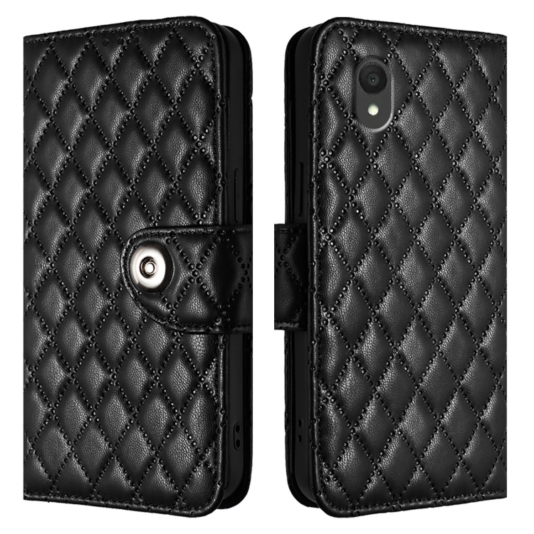 Funda de Cuero para TCL 201 con Tapa Textura Rómbica y Cordón (Negro)