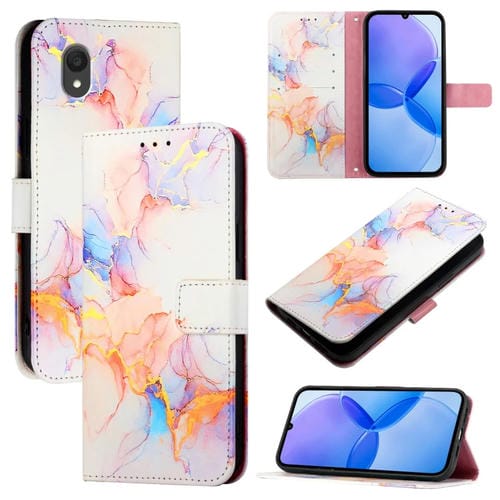 Funda de Cuero con Tapa para TCL 201 Pt003 con Patrón Mármol (Galaxy Marble White)