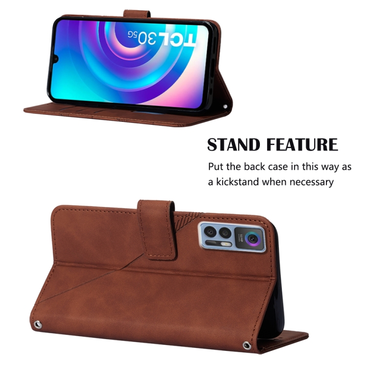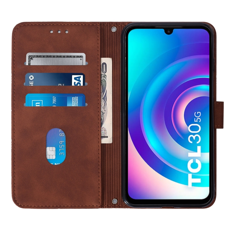 Funda de Cuero con Tapa para TCL 30 5G y 30+ 5G Crossbody 3D (Marrón)