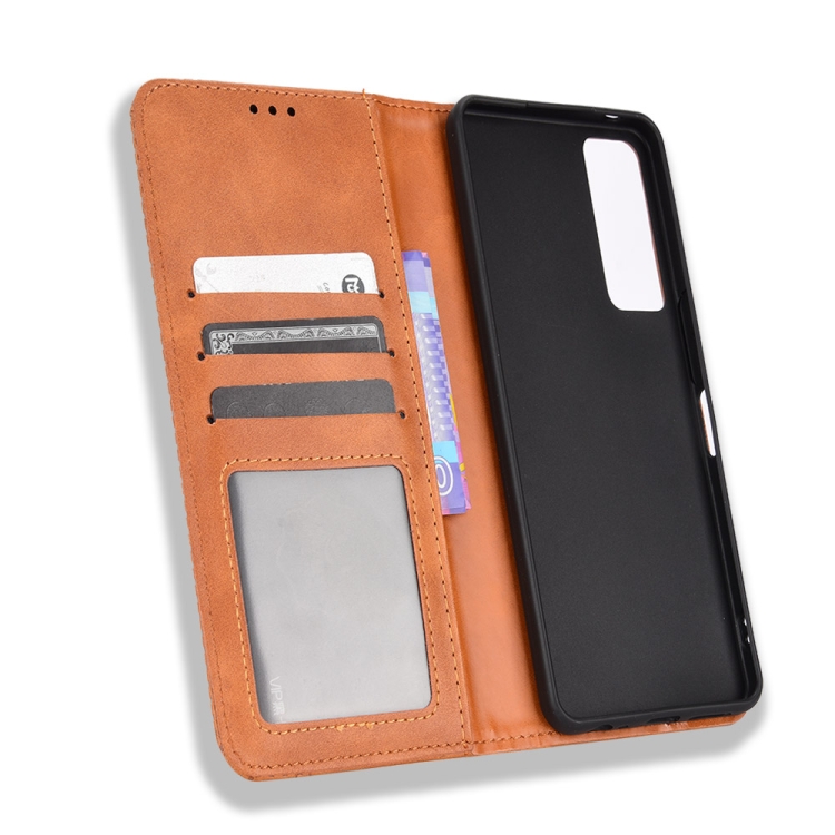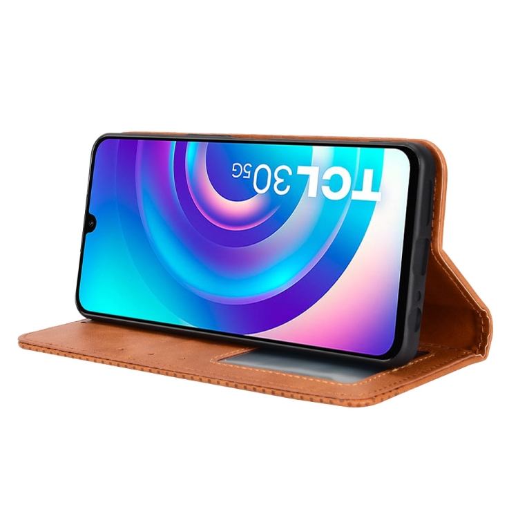 Funda de Cuero con Hebilla Magnética para TCL 30 5G / 30+ Textura Retro (Marrón)