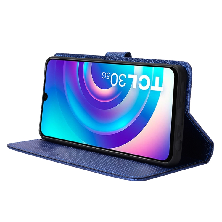 Funda de Cuero para TCL 30 5G y 30+ con Textura Diamante (Azul)