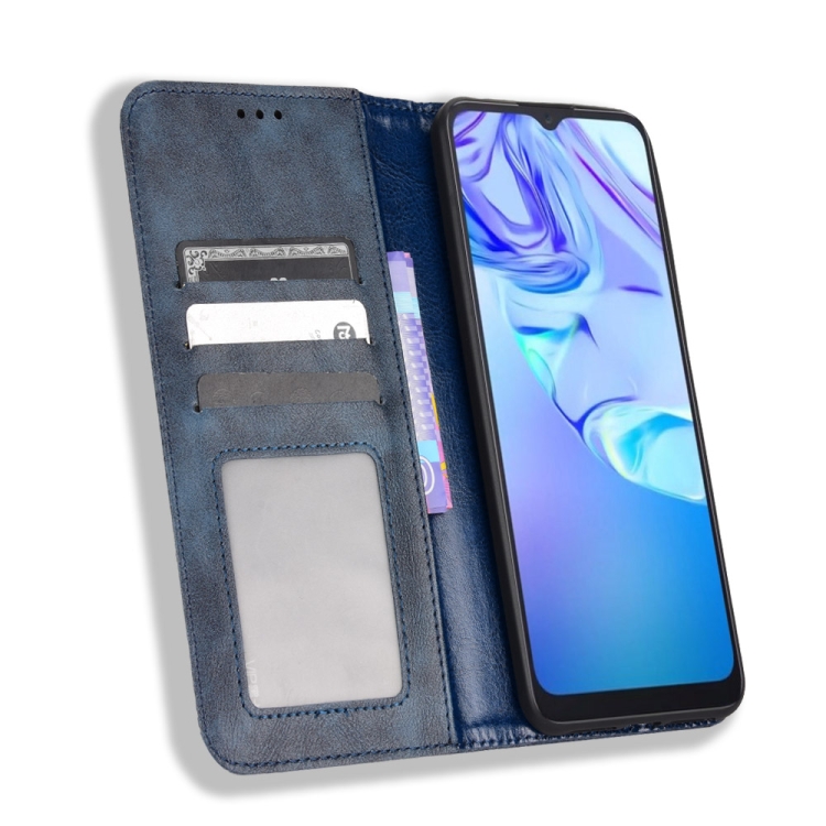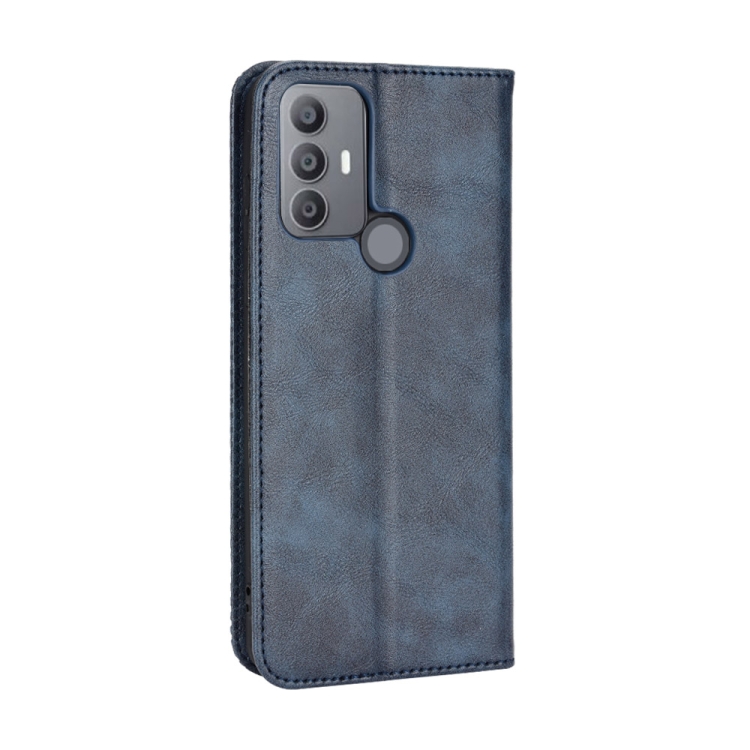 Funda para TCL 30 Se / 30 E / 306 / Sharp Aquos V6 con Hebilla Magnética y Textura Retro de Cuero (Azul)