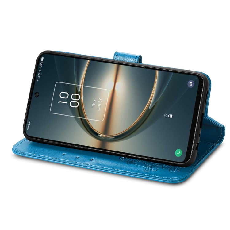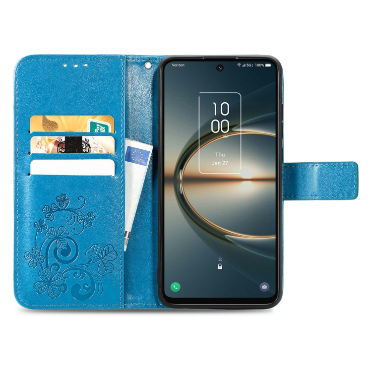 Funda para TCL 30 V 5G Caja de Cuero con Cierre de Cuatro Hojas y Hebilla (Azul)
