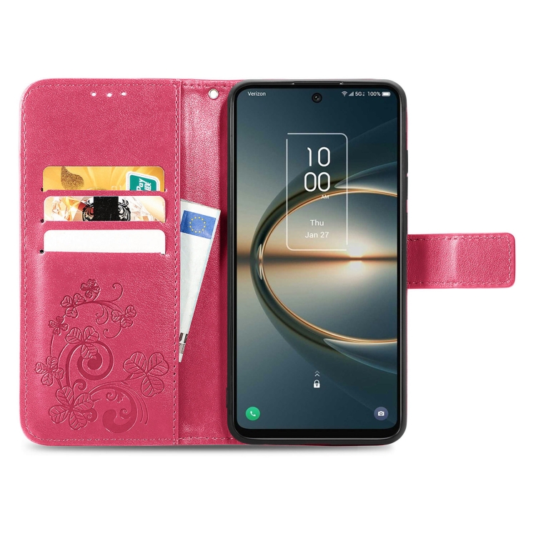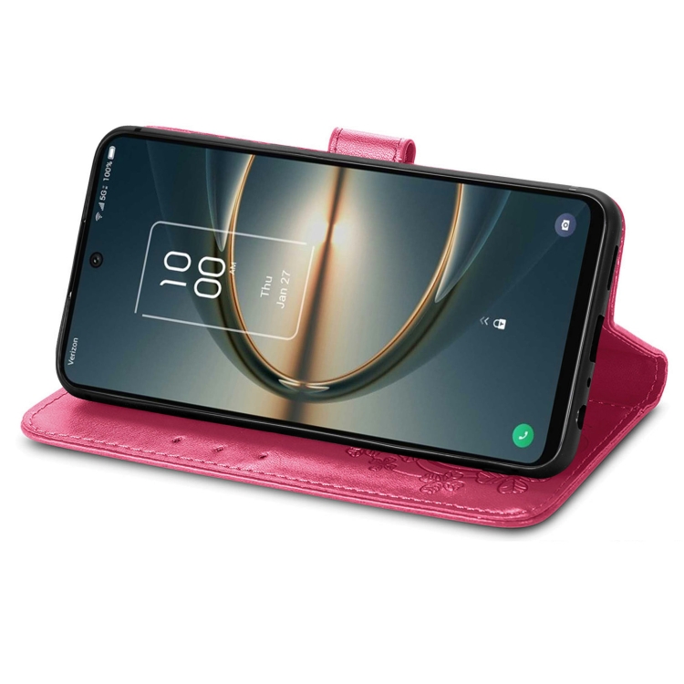 Funda para TCL 30 V 5G Caja de Cuero con Cierre de Cuatro Hojas y Hebilla (Magenta)