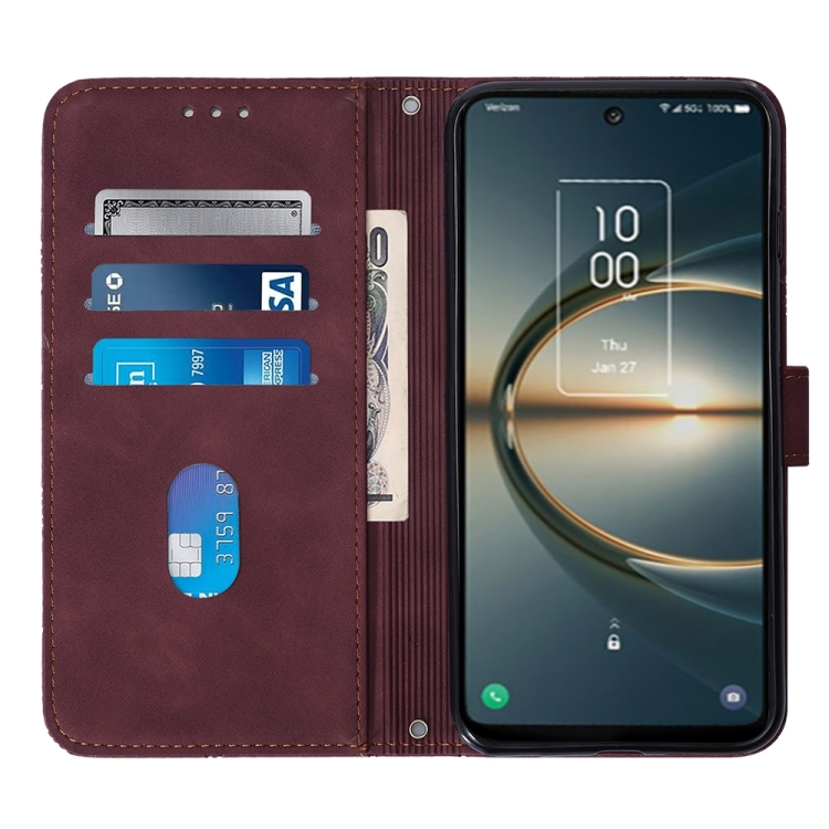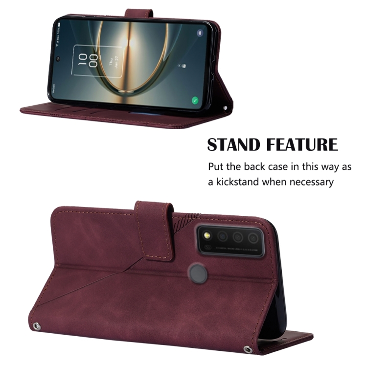 Funda de Cuero con Tapa para TCL 30 V 5G T781S y 30Xe 5G Crossbody (Rojo Vino)