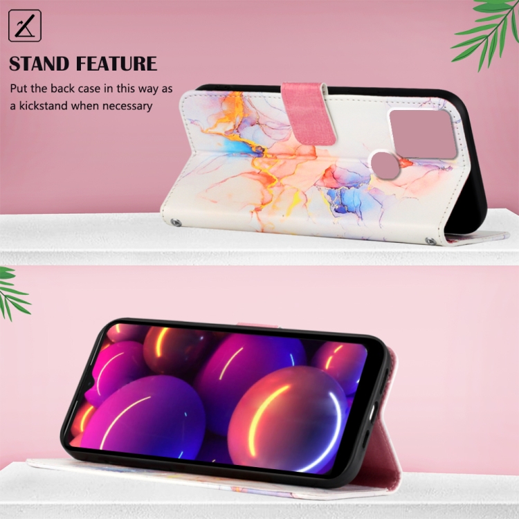 Funda Flip de Cuero para TCL 305I con Huella Dactilar Pt003 Patrón Mármol (Blanco)