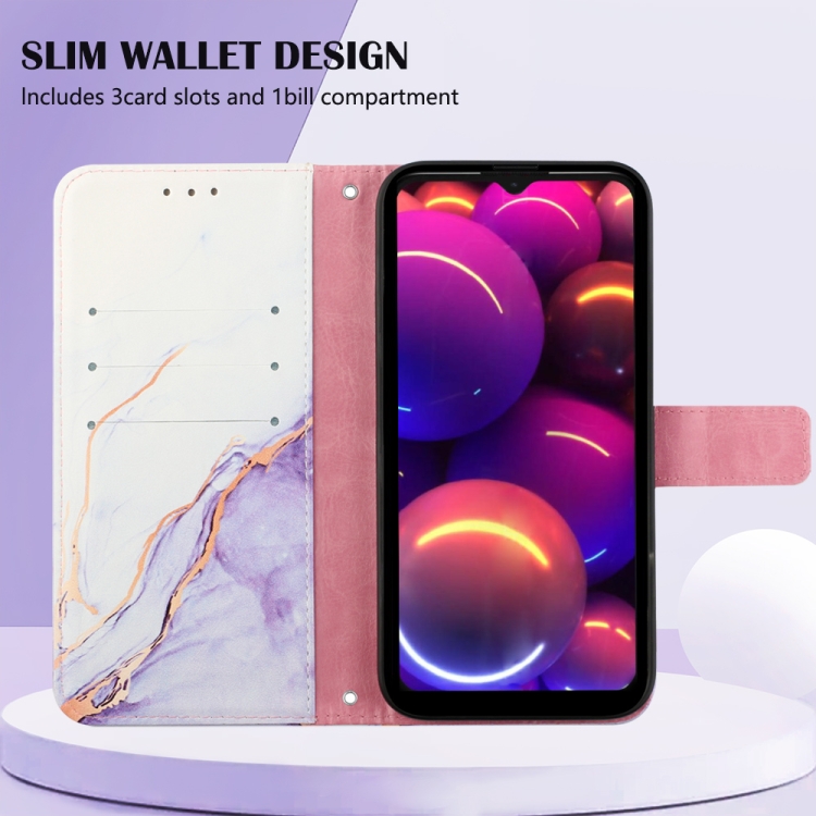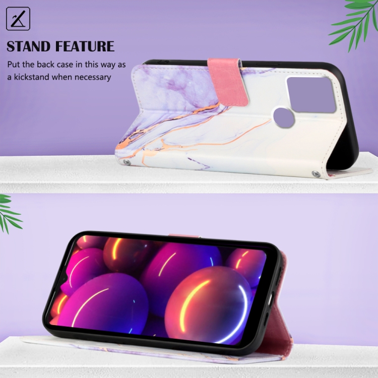 Funda de Cuero con Tapa para TCL 305I con Huella Digital Pt003 Patrón Mármol (Blanco Púrpura)