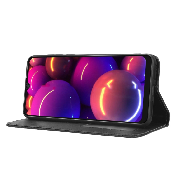 Funda de Cuero para TCL 305I con Hebilla Magnética y Textura Retro (Negro)
