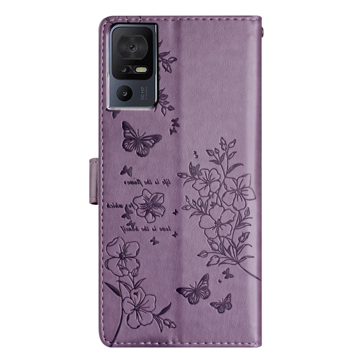 Funda de Cuero para TCL 40 Se Butterfly Love Flower en Relieve (Púrpura)