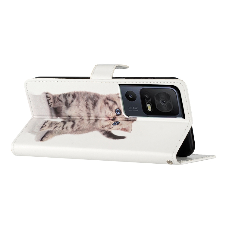 Funda de Cuero para TCL 40 Se con Dibujo Coloreado de Pequeño Gato Atigrado