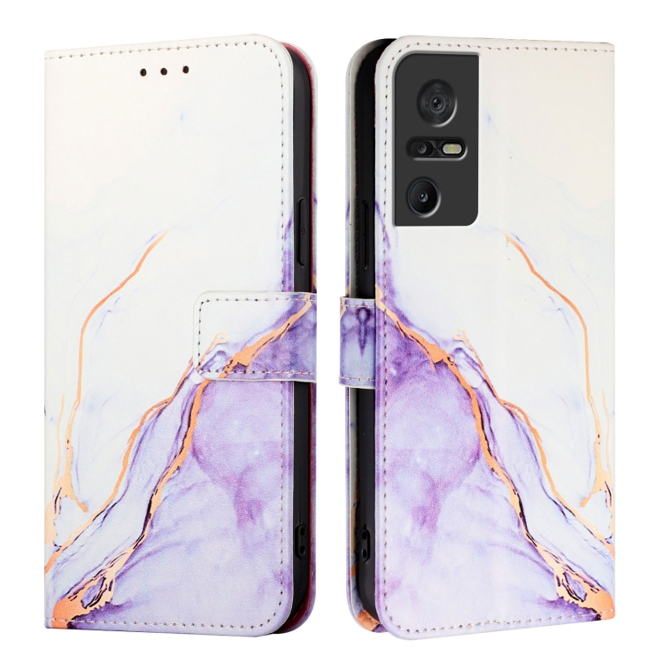 Funda de Cuero con Tapa para TCL 40 Se Pt003 con Patrón de Mármol (Blanco y Morado)