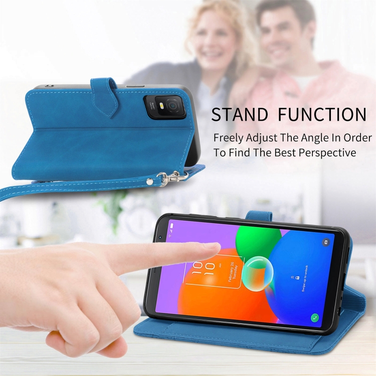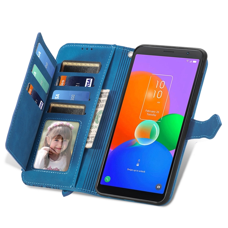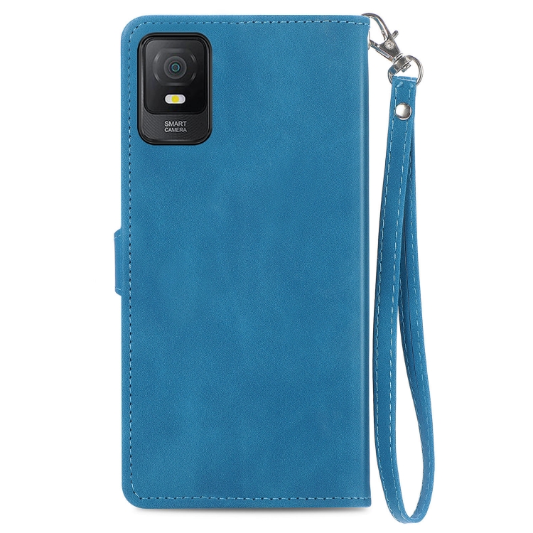 Estuche para TCL 403 de Cuero con Cremallera y Flores en Relieve (Azul)