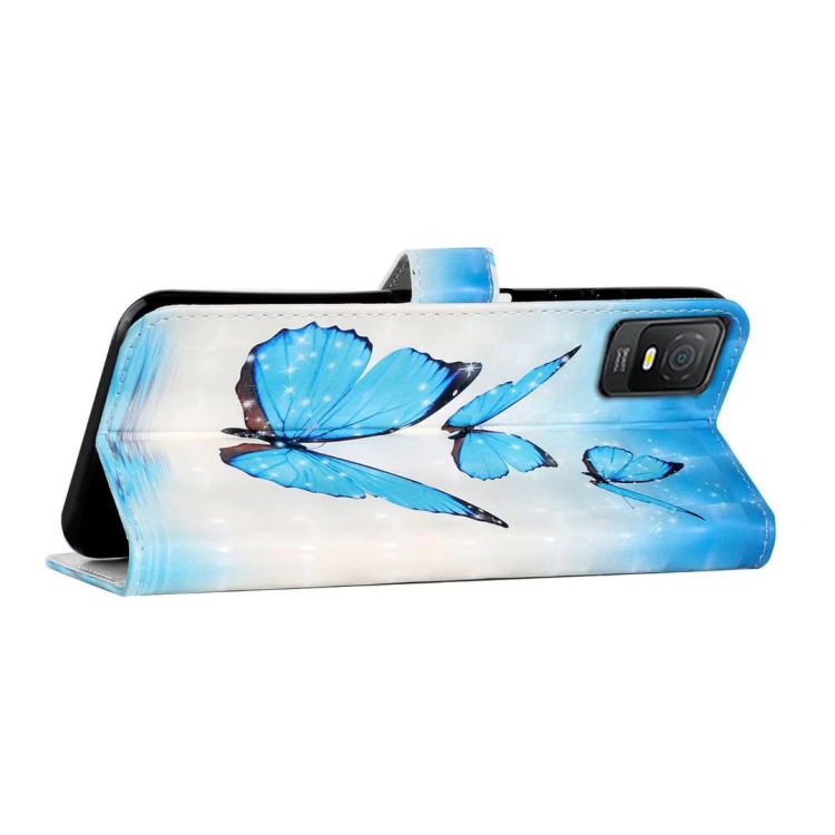 Funda de Cuero para TCL 403 con Dibujo 3D en Relieve al Óleo (3 Mariposas)