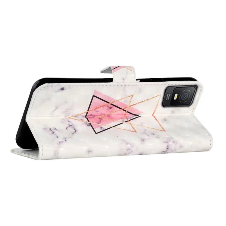 Funda de Teléfono TCL 403 Cuero con Dibujo 3D en Relieve al Óleo (Mármol Triangular)