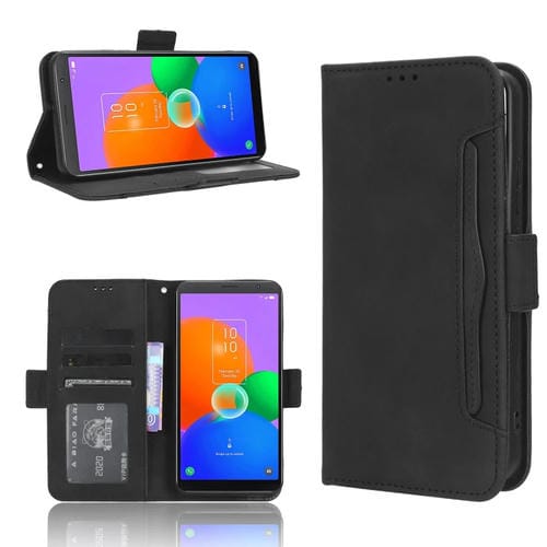 Funda de Cuero para TCL 403 Skin Feel con Ranuras para Tarjetas (Negro)