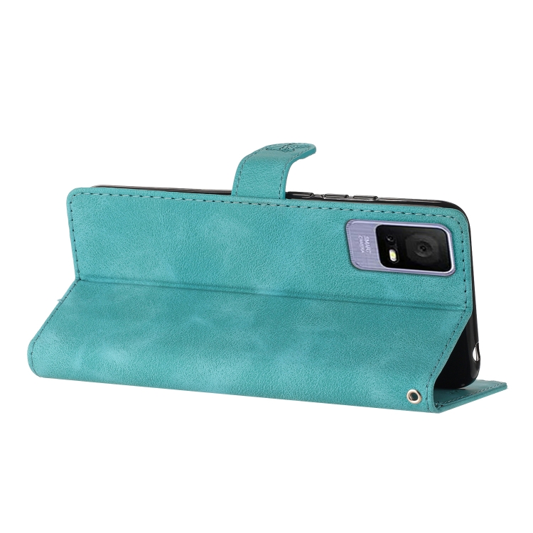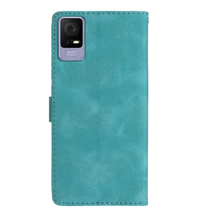 Funda de Cuero para TCL 405 / 406 / 408 con Estampado de Mariposa y Flores (Azul Cielo)