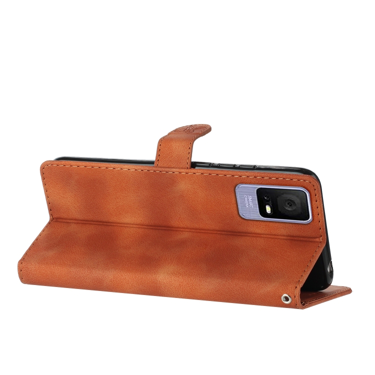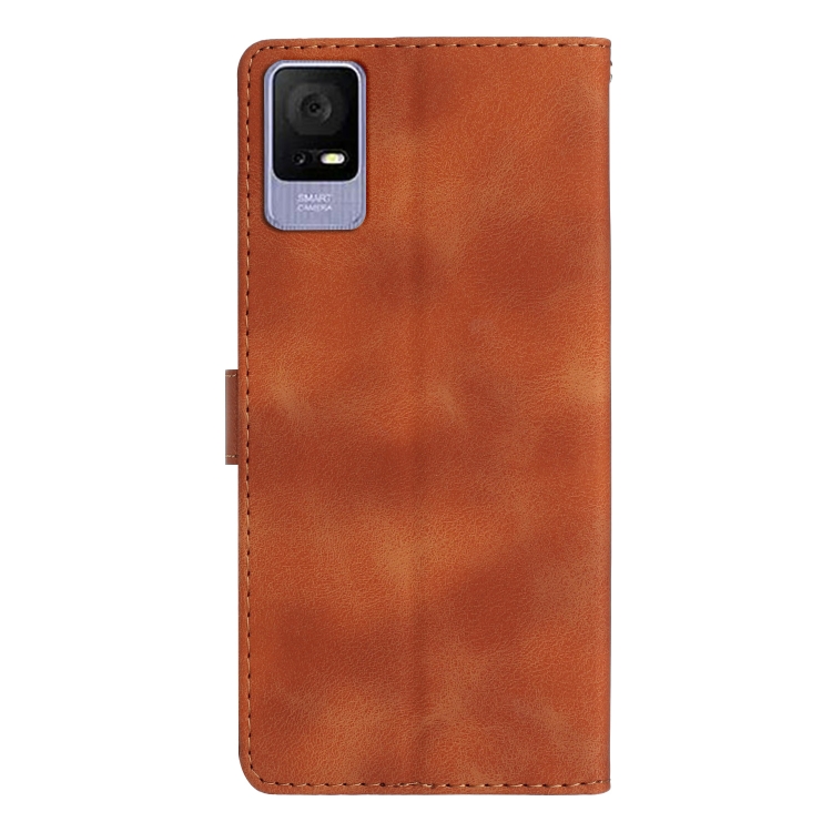 Funda de Cuero para TCL 405 / 406 / 408 con Estampado de Mariposa y Flores (Marrón)