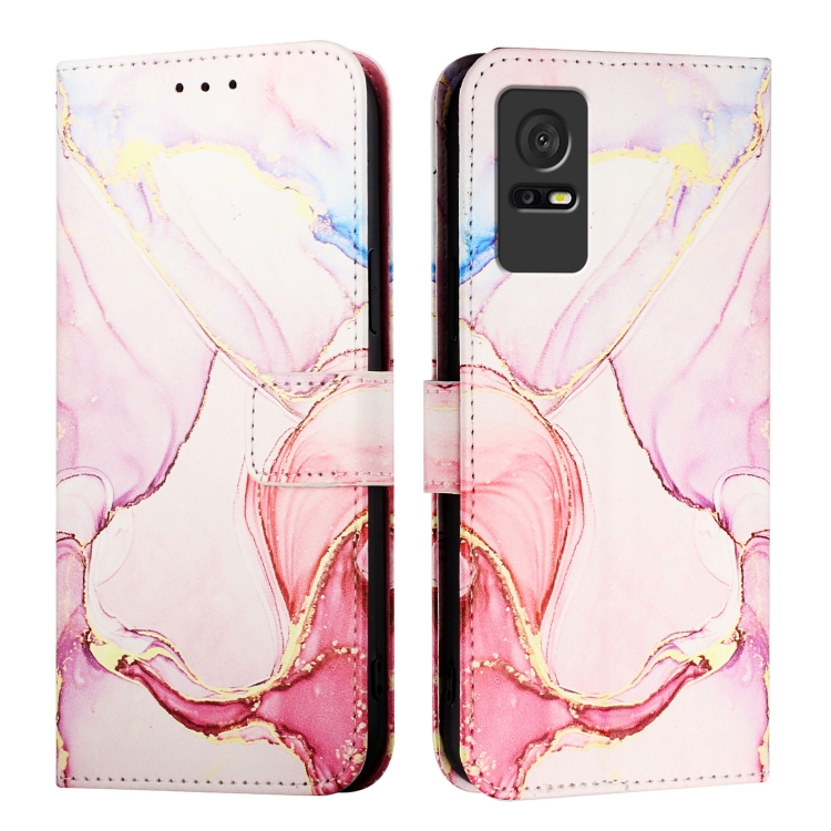 Funda para Teléfono TCL 405/406/408 Pt003 Cuero con Tapa y Patrón Mármol (Oro Rosa)