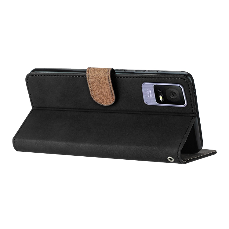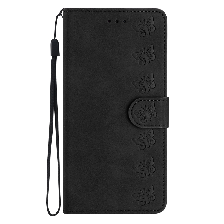 Funda de Cuero En Relieve para TCL 405 / 406 / 408 Siete Mariposas (Negro)