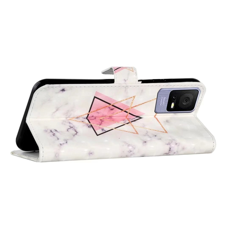 Funda de Cuero para TCL 405/406 con Dibujo 3D en Relieve al Óleo (Mármol Triangular)