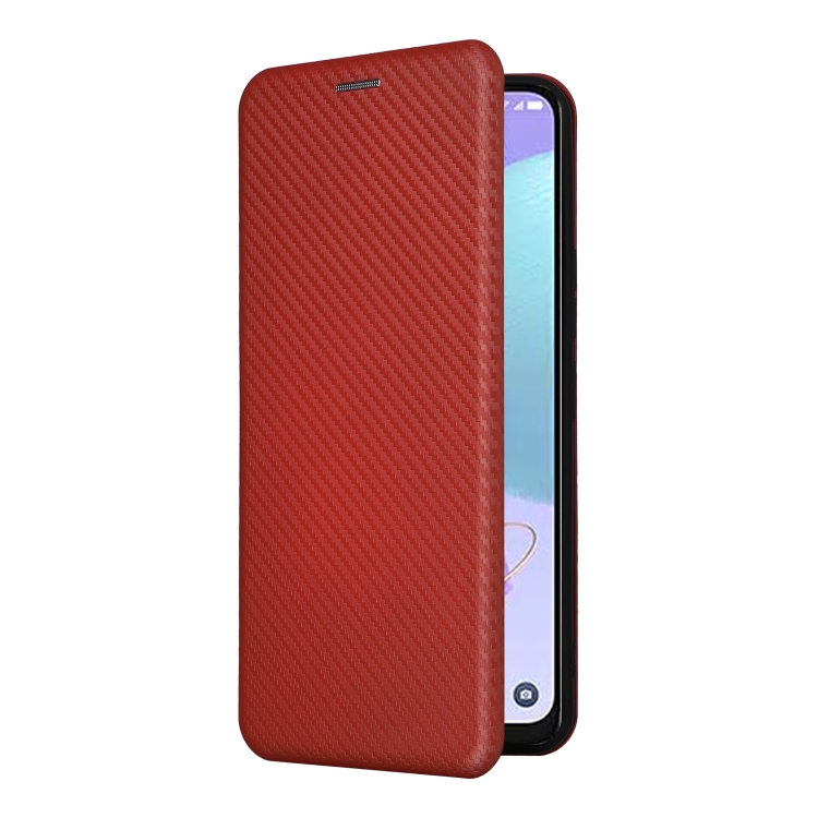 Funda de Cuero para TCL 408 con Textura de Fibra de Carbono (Marrón)