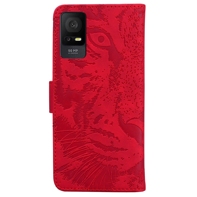 Funda de Cuero Flip para TCL 408 Tiger con Patrón Embossing (Rojo)