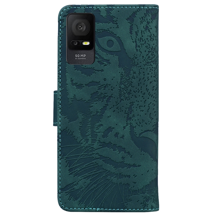 Funda Flip de Cuero para TCL 408 Tiger con Patrón Embossing (Verde)